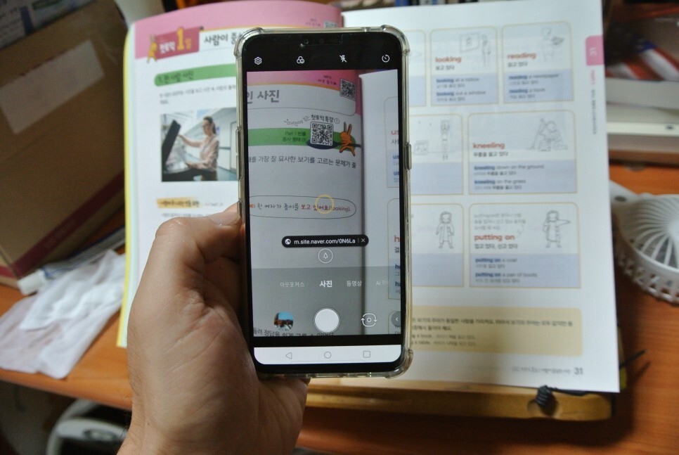 위처럼 교재의 QR코드를 카메라로 촬영하면 이동 주소값이 화면에 나타납니다.