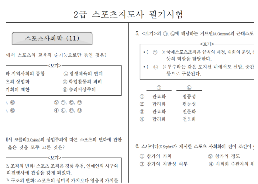 스포츠 지도사 2급 스포츠사회학 2023년 기출 문제 풀이