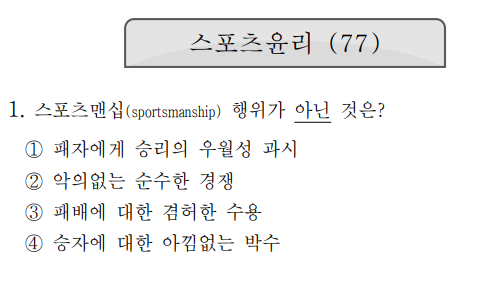 1. 스포츠맨십(sportsmanship) 행위가 아닌 것은?