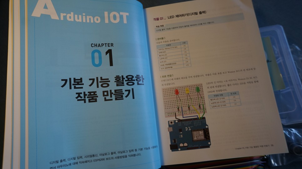 제가 사용한 사물인터넷과 40개의 작품들 사물인터넷과 40개의 작품들 책과 다두이노에서 판매하고 있는 부품 키트입니다.