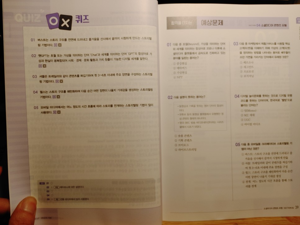 각 섹션이 끝나면 OX 퀴즈와 예상문제가 출제되는데요.