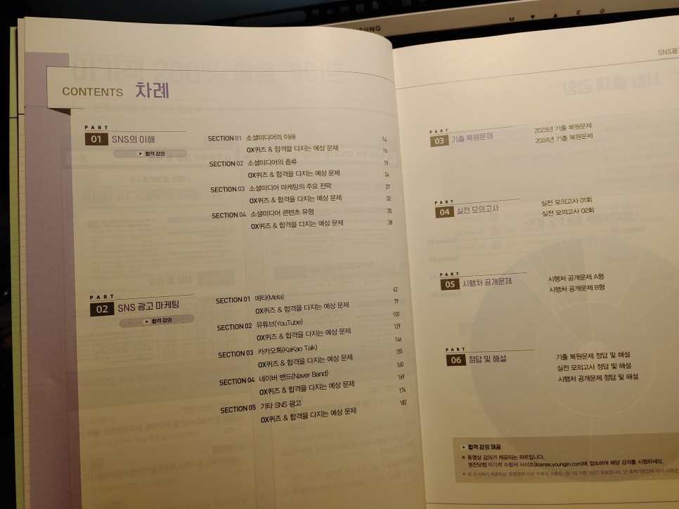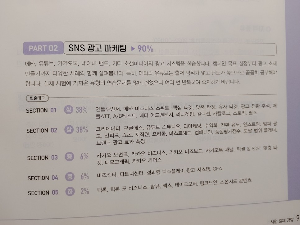 SNS광고마케터 1급 시험은 자격 검증이라 학문적인 체계를 따라 구성이 되었습니다.