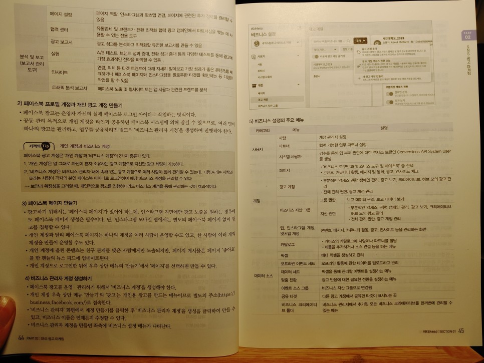 책을 보면서 소셜미디어의 관리 페이지를 처음 알게 되었는데요.