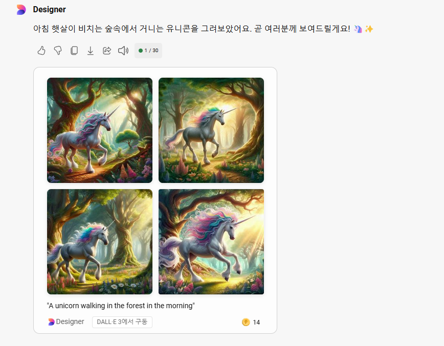 Designer : Bing image creator를 이용해 이미지를 생성할 수 있습니다.