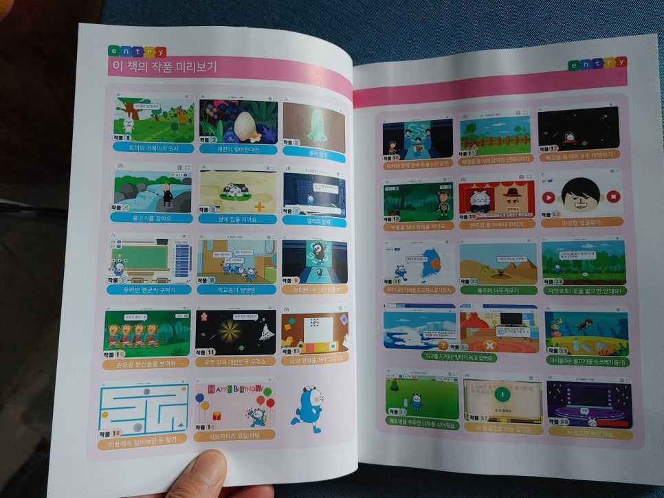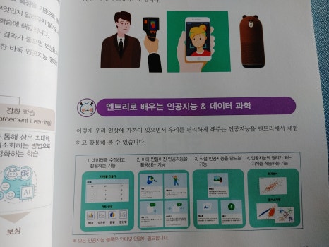 엔트리를 이용해서 인공지능 프로그램까지 직접 작품을 만들면서 배우는 코딩 교재인데요.