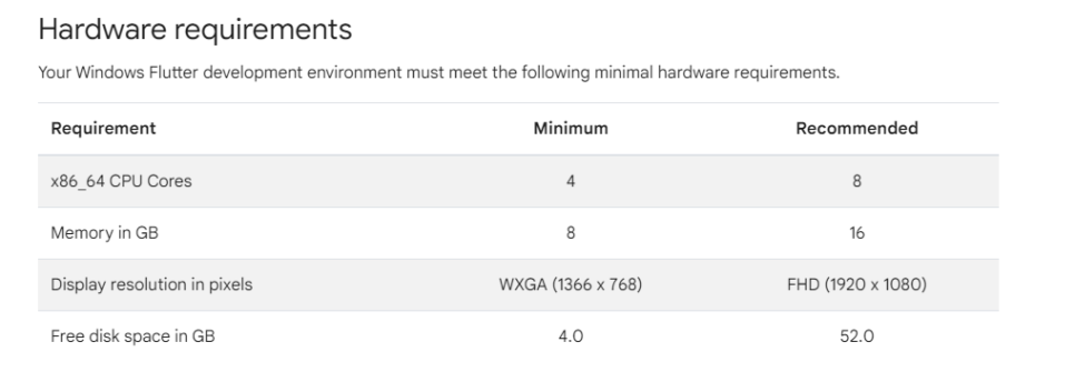설치하는데 필요한 시스템 사양을 추천해 줍니다.