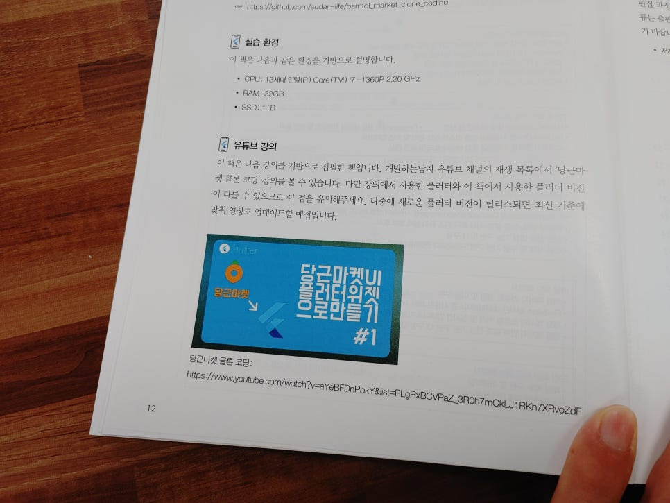 이렇게 개발하는 남자의 핸즈온 플러터 도서는 기초에서 시작해서 당근과 같은 앱을 만들어 볼 수 있게 꾸며져 있습니다.