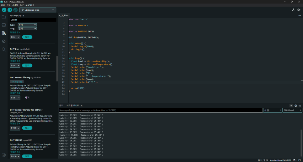 - 아두이노 보드에서 동작이 되는 지 확인해 보시면 끝입니다.