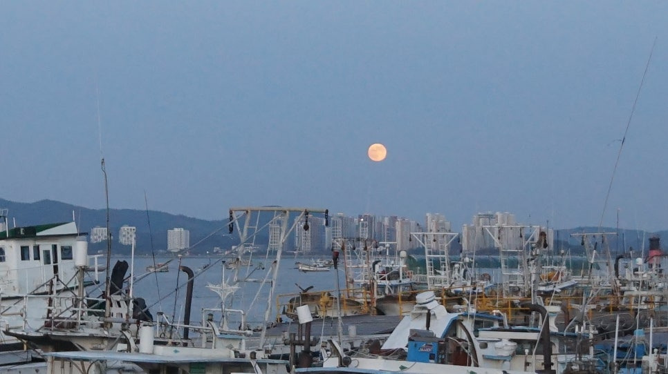 해질녘이라 달이 유독 크게 떴네요.