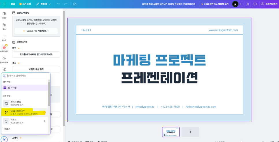 캔바 형태의 프로그램을 사용해 보지 않은 분들은 처음부터 따라 하시면서 캔바를 익히시는 것이 좋고요.