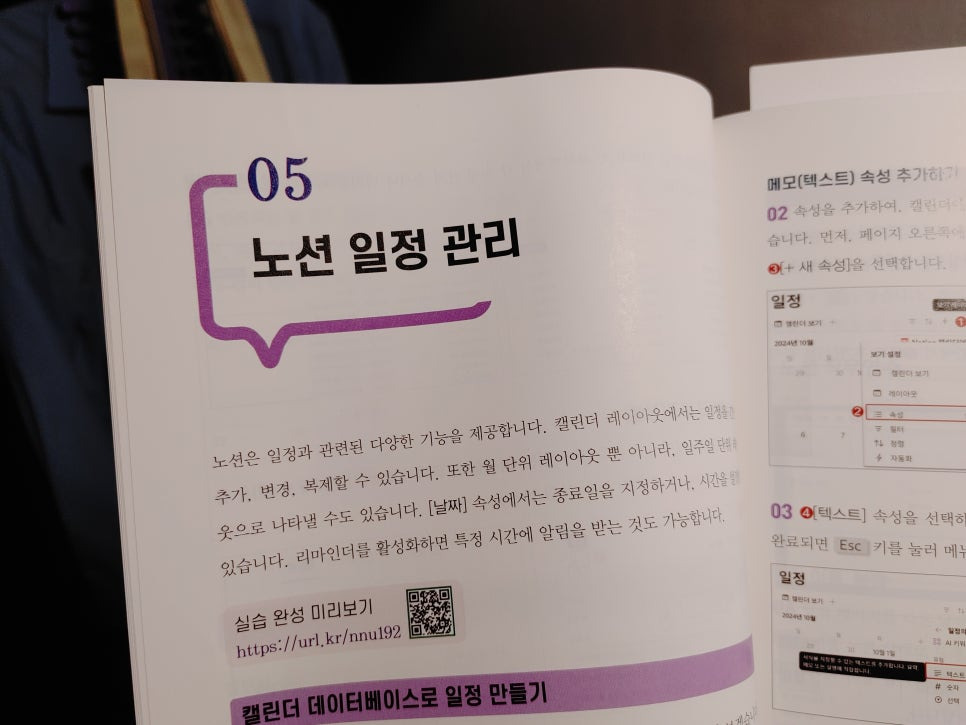 노션을 사용해 보겠다고 시작하신다면 처음에는 기본적인 기능을 익히시고 그다음에는 직접 만들기를 따라 하시는 것이 좋습니다. 책에서는 QR코드를 통해 미리 완성된 부분을 확인 한 후에 책을 따라 만들어 볼 수 있게 꾸며져 있습니다.