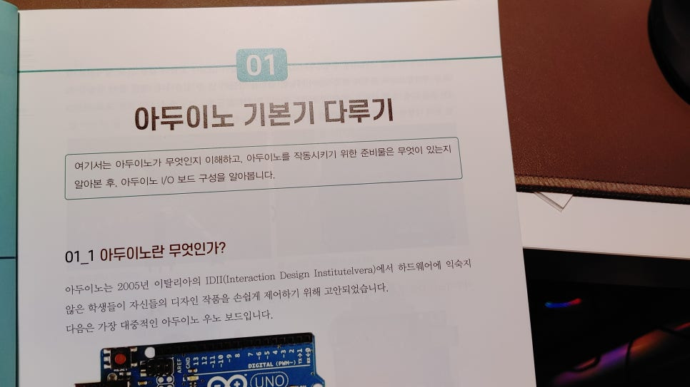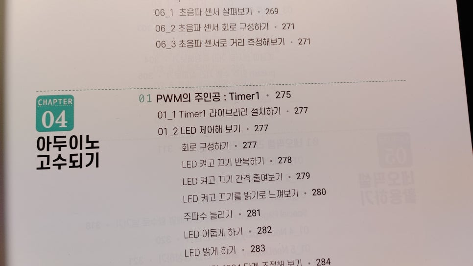 책은 아두이노 기초 다지기, 초수 되기, 중수되기, 고수되기로 챕터가 나뉘어 있는데요.