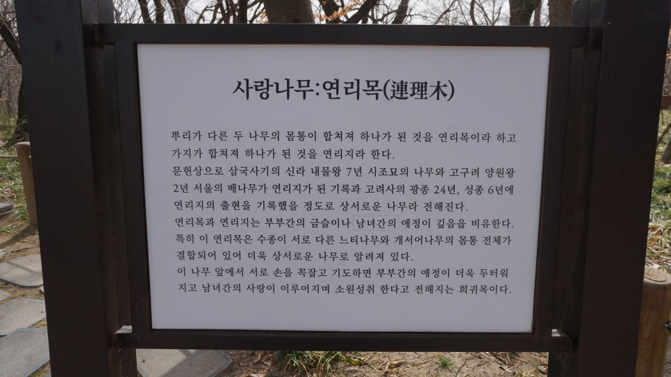 뿌리가 다른 두 나무의 몸통이 합쳐져 하나가 된 것을 연리목이라 하고 가지가 합쳐져 하나가 된 것을 연리지라 합니다.
