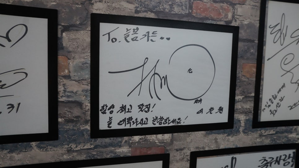 식당에 들어가니 한쪽 벽면으로 가득 유명인의 사인이 걸려있는데요.