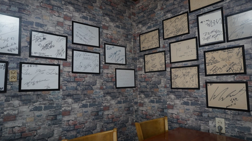 식당에 들어가니 한쪽 벽면으로 가득 유명인의 사인이 걸려있는데요.