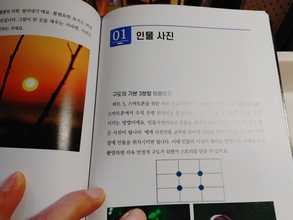 그리고 3장에서는 스마트폰을 이용해서 사진을 찍을 때 어떤 구도로 사진을 찍어야 하는지 설명해 줍니다.