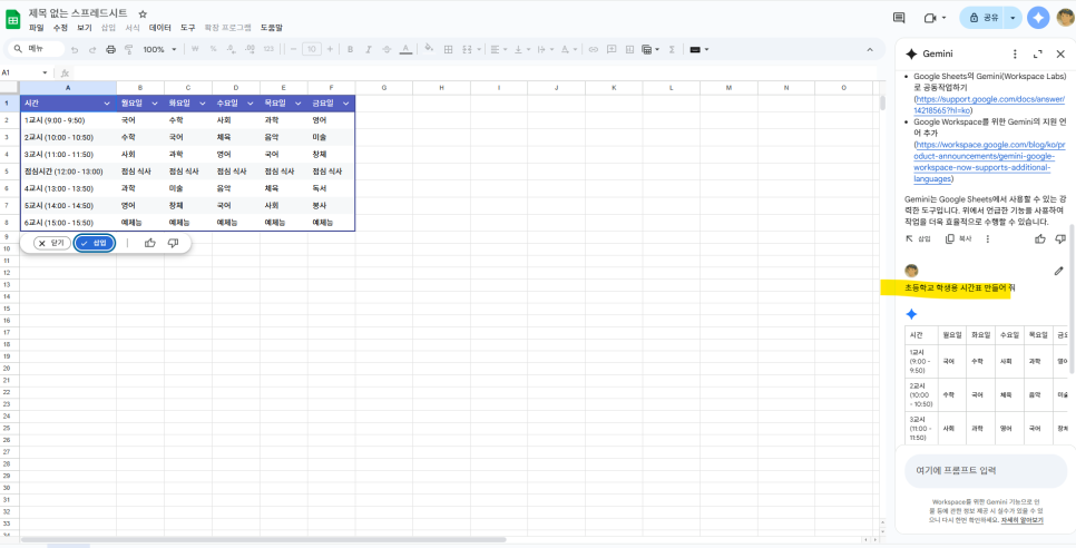 이제 구글 시트에서 제미나이를 사용해 보겠습니다.