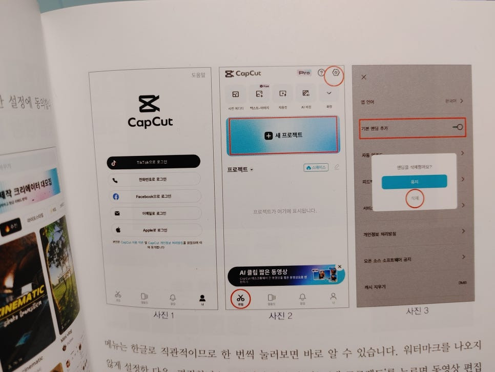 책에서 소개하는 영상 편집은 캡컷인데요.