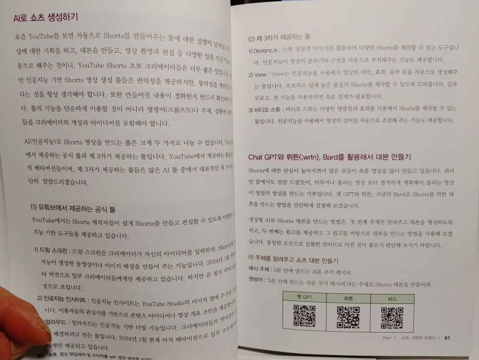 파트 4장에서는 생성형 AI를 활용한 숏폼 제작 방법을 소개해 줍니다.