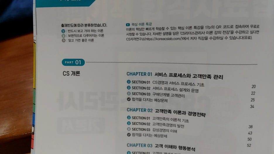 책은 CS 개론, CS 전략론, 고객 관리 실무론에 대한 이론을 3개 파트로 설명해 주고요.