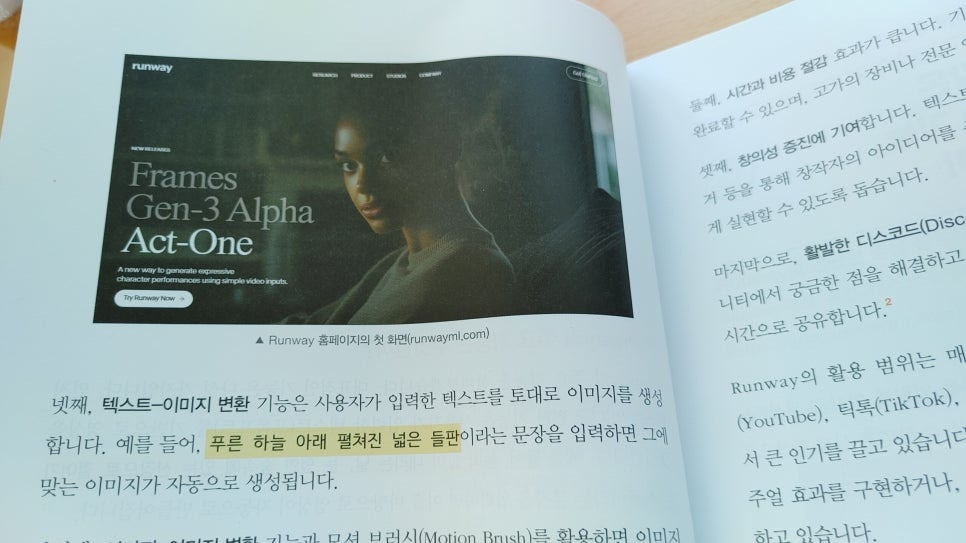 이번 시간에는 한빛미디어에서 출간한 AI로 하루 만에 영상 만들기 with 런웨이 책을 통해 인공지능을 통한 영상과 이미지 만들기를 정리해 보려고 합니다.