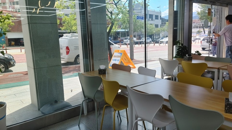 통 유리창으로 테이블도 예쁜 톤으로 만들어졌습니다.