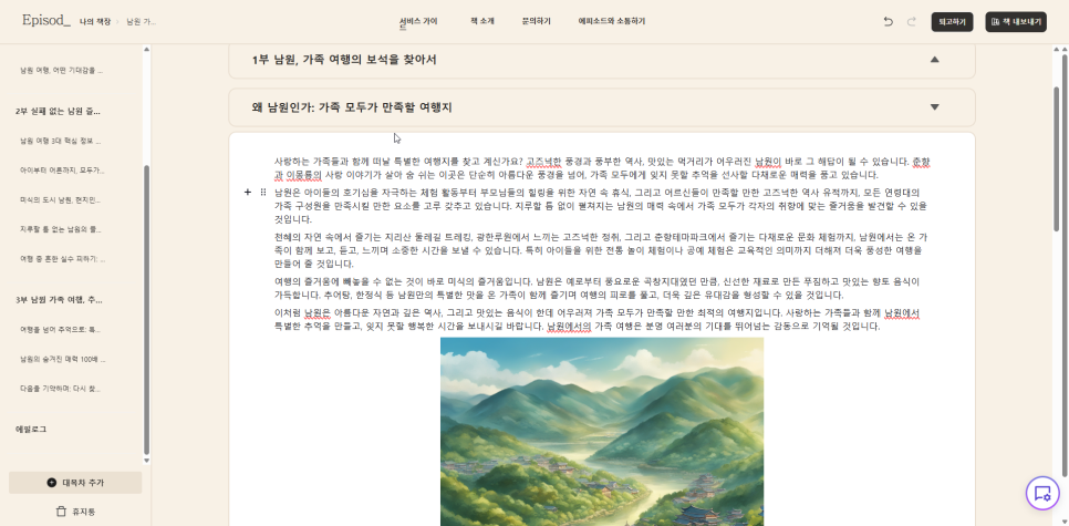 에피소드 생성형 인공지능 서비스를 이용하면 좀 더 쉽게, 사실 아주 편하게 목차를 잡을 수 있습니다.