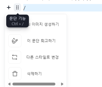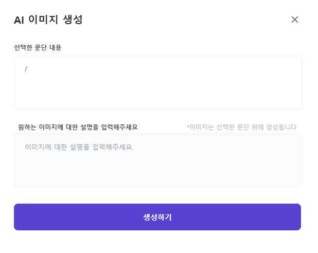 그리고 문단 기능에서 AI가 이미지를 생성해 주는 서비스도 이용할 수 있습니다.