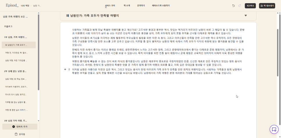 책을 다 만들었으면 책 내보내기를 통해 워드 파일로 출력할 수 있습니다.
