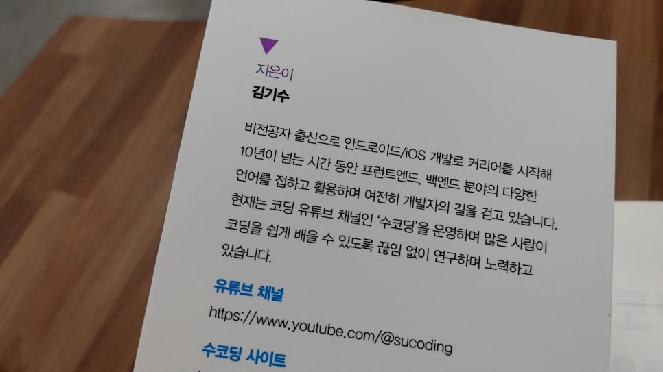 저자인 김기수 선생님은 코딩 채널 수코딩을 운영하시는데요.