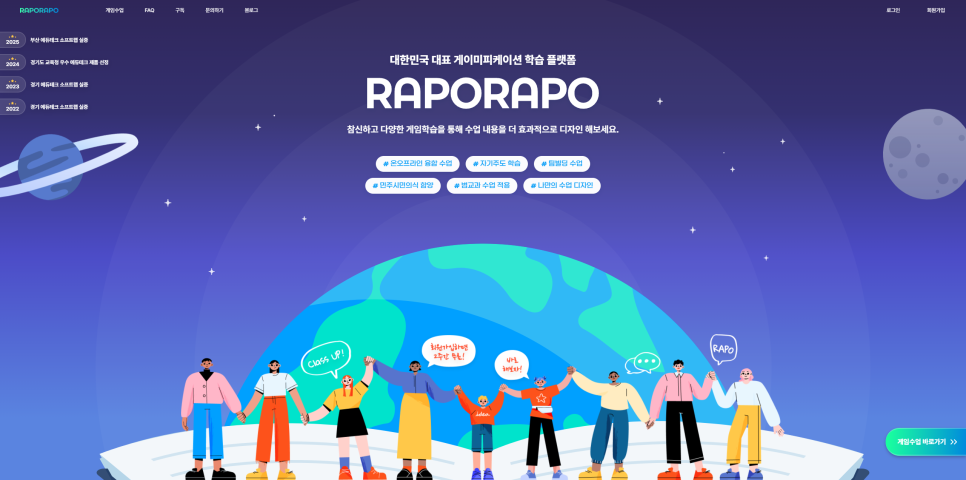 퀴즈에 게임 요소를 연결시켜 몰입도를 높이는 형태입니다.