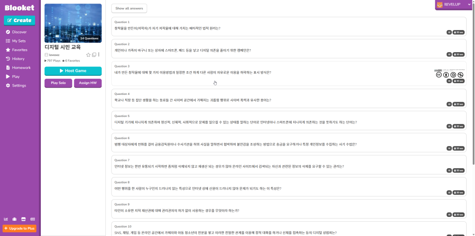 퀴즈는 Discover를 이용해서 기존에 만들어 놓은 것을 사용할 수 있고요.