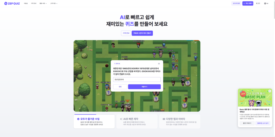 무료 버전에서도 퀴즈 문제를 낼 수 있습니다.