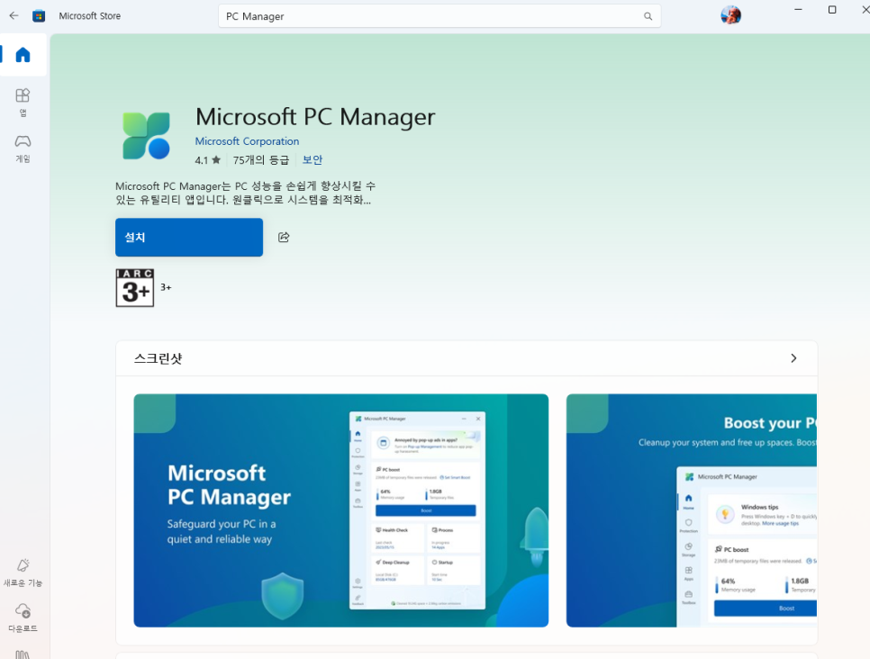 스토어 페이지에서 바로 설치하고 사용할 수 있어 편리하네요.