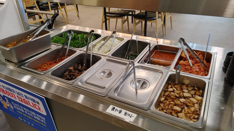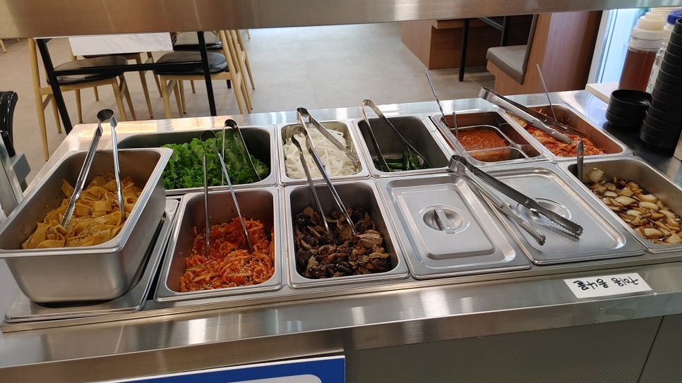 찬은 셀프 바에스 필요한 것 가져다 먹을 수 있어 편리합니다.