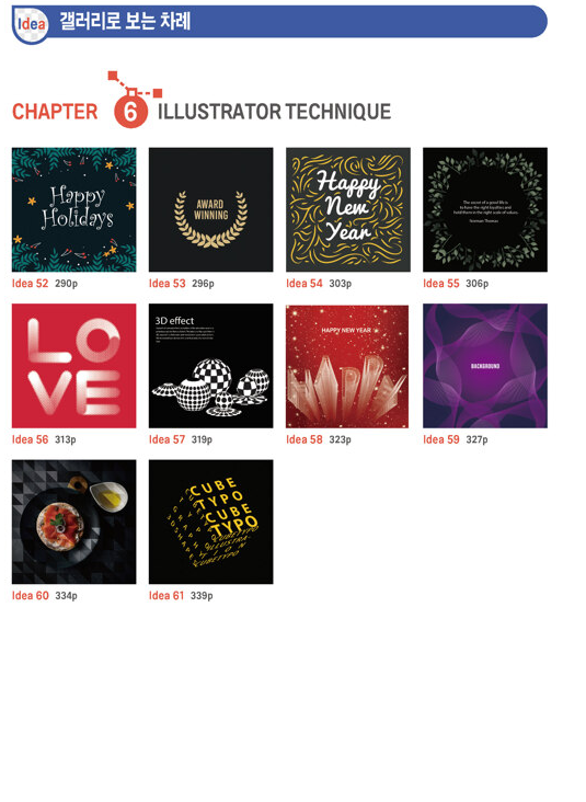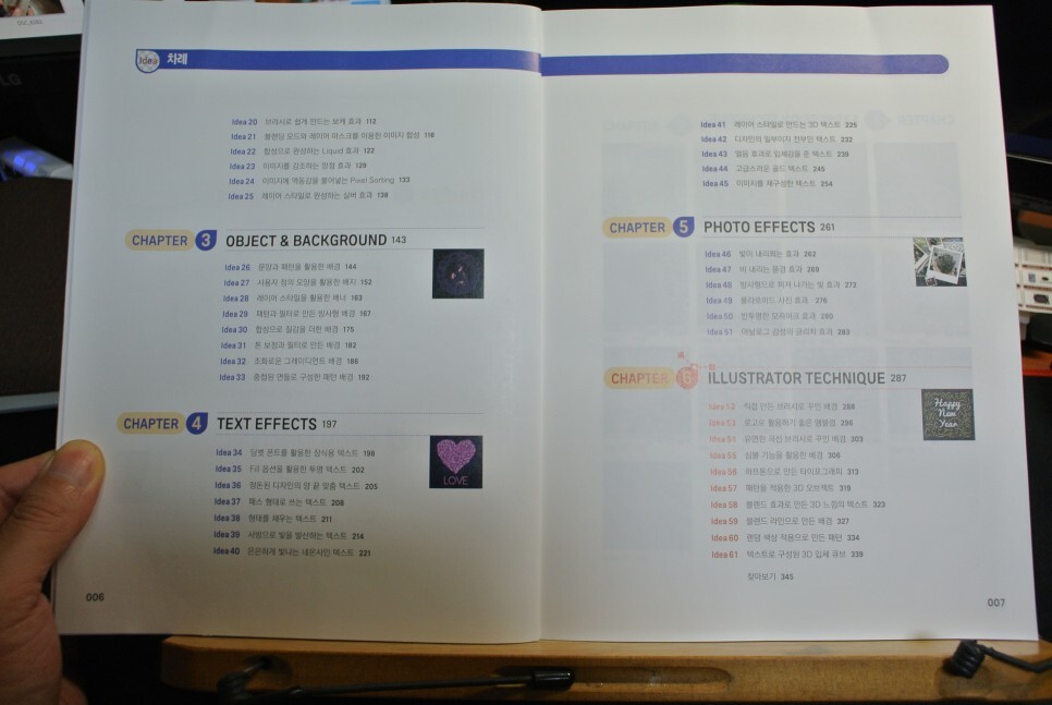 1-5장까지는 포토샵 테크닉이고요. 6장이 일러스트레이터 입니다.