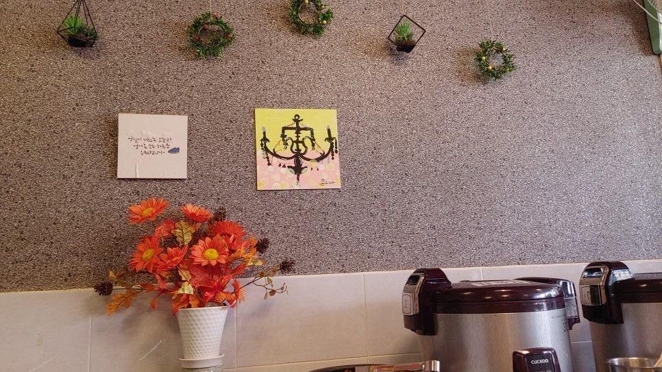 화려한 그림이 아니라 자녀가 그린 듯한 그림도 걸려 있는데요.