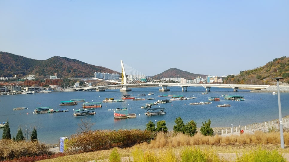 섬에서 바라보는 여수의 풍경은 그야말로 절경입니다. 바다 건너 보이는 도시의 모습이 평화롭기 그지없습니다.
