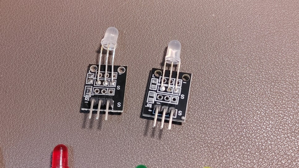 특징: 기판 위에 작은 칩 저항(SMD 저항)이 이미 붙어 있습니다. 따라서 별도의 저항 없이 바로 연결해도 안전합니다.