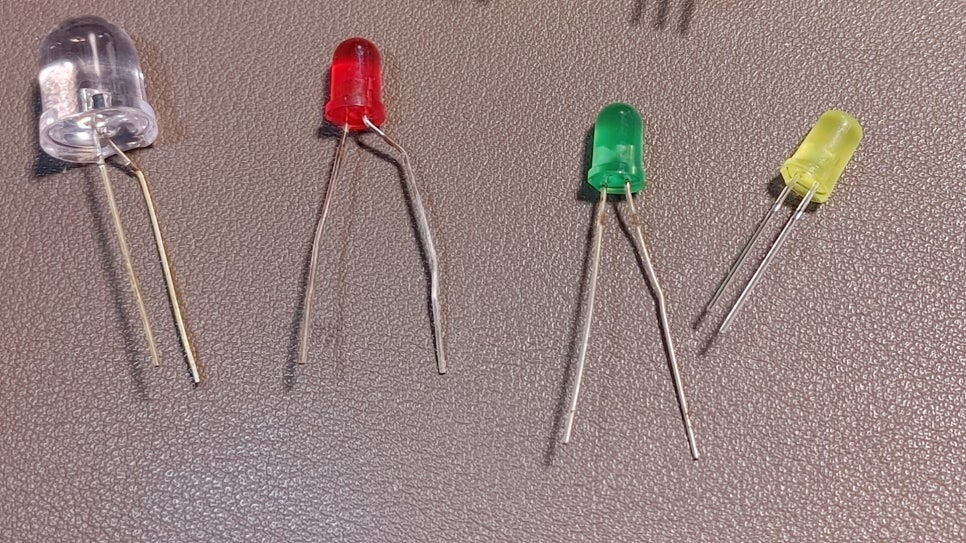 긴 다리 (+, Anode): 전기가 들어가는 곳. 저항을 거쳐 아두이노 핀에 연결.