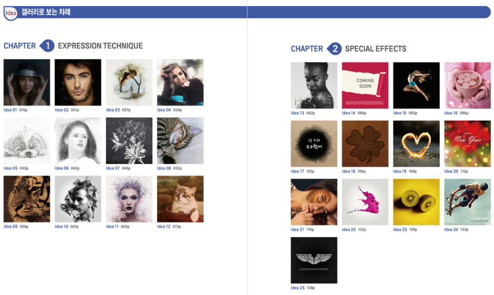 각 챕터는 다양한 테크닉과 효과를 중심으로 묶어놨는데요.