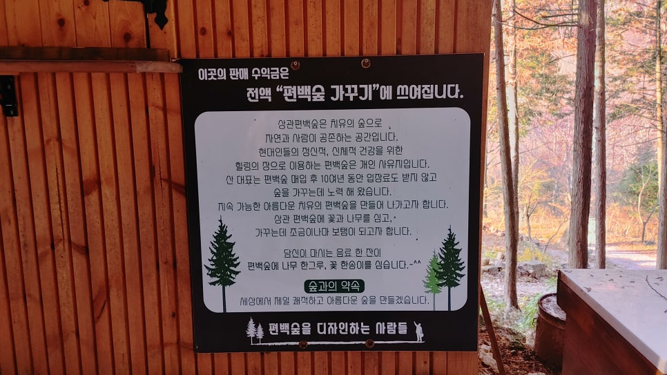 이곳의 수익금은 숲을 가꾸는 데 쓰인다고 하니, 따뜻한 차 한 잔으로 숲 가꾸기에 동참해 보시는 건 어떨까요?