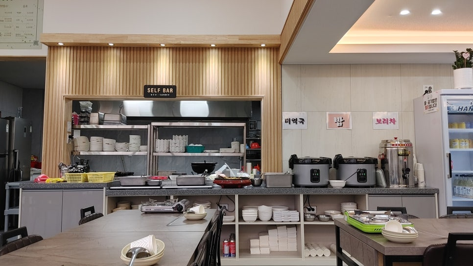 셀프바 운영가 운영되어 기본 찬 외에도 새로운 반찬들이 정갈하게 준비되어 있어요.