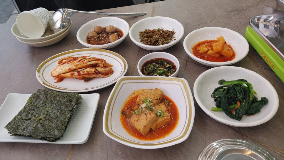 자리에 앉으니 기본 찬만 무려 8가지가 세팅됩니다.