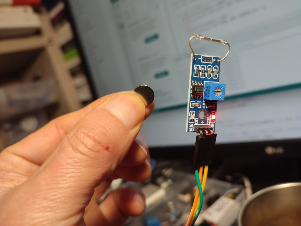 "자석이 가까이 오면 LED로 알리기"