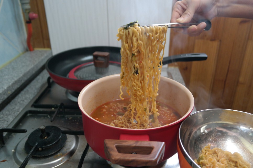 이렇게 끓기 시작하면 라면을 넣으면 되는데요.