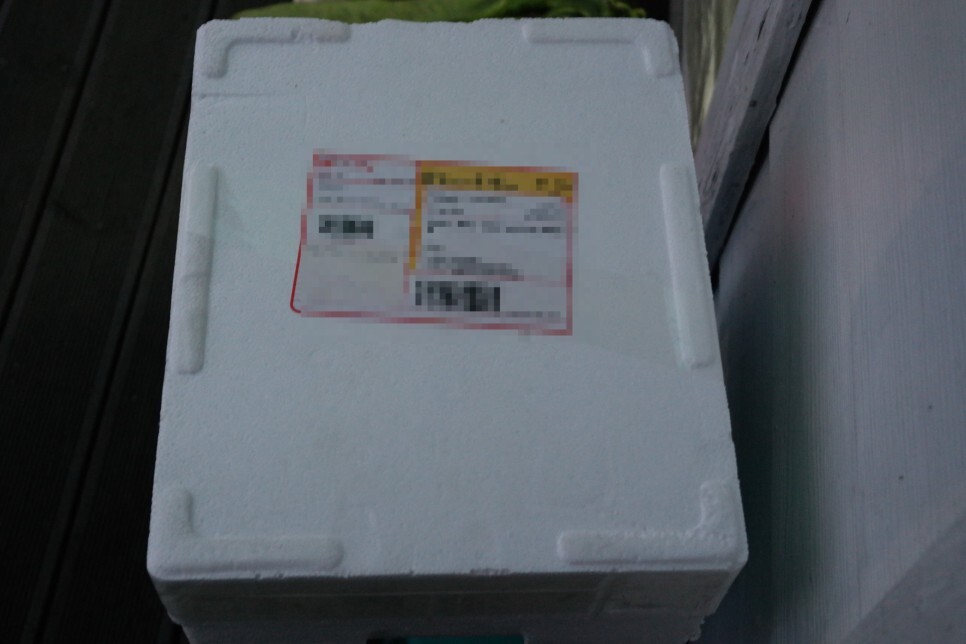 저희 동네는 오전에 도착해서 아이스박스에 담겨있는 아이스팩이 얼어있는 상태로 배송됩니다.