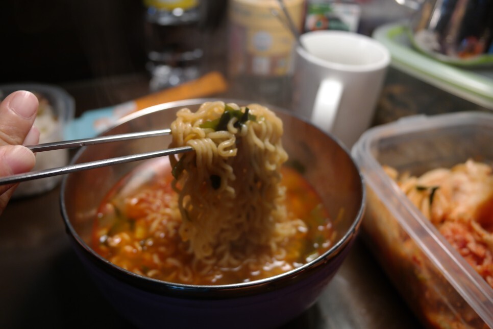 전 짬뽕라면 2개를 끓이기 위해 4컵을 넣고 끓였습니다.