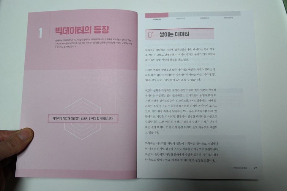 첫 번째 챕터에서는 벡데이터에 대한 설명과 직무에 대해 소개해 줍니다.