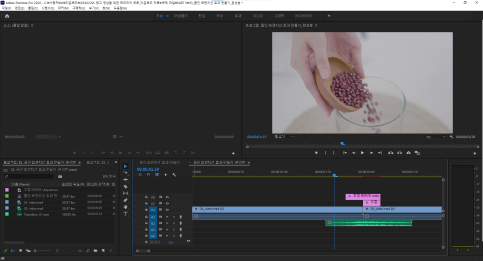 이렇게 어도비프리미어프로를 통해 작업하면서 완성해 보면서 배우기 때문에